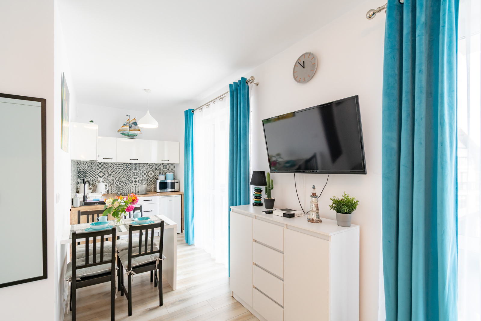 Apartament: leżaki, parawan, żelazko, deska do prasowania, Wi-Fi, telewizor, duża, pojemna szafa na ubrania, rozkładana suszarka do ubrań, odkurzacz, mop, meble balkonowe.