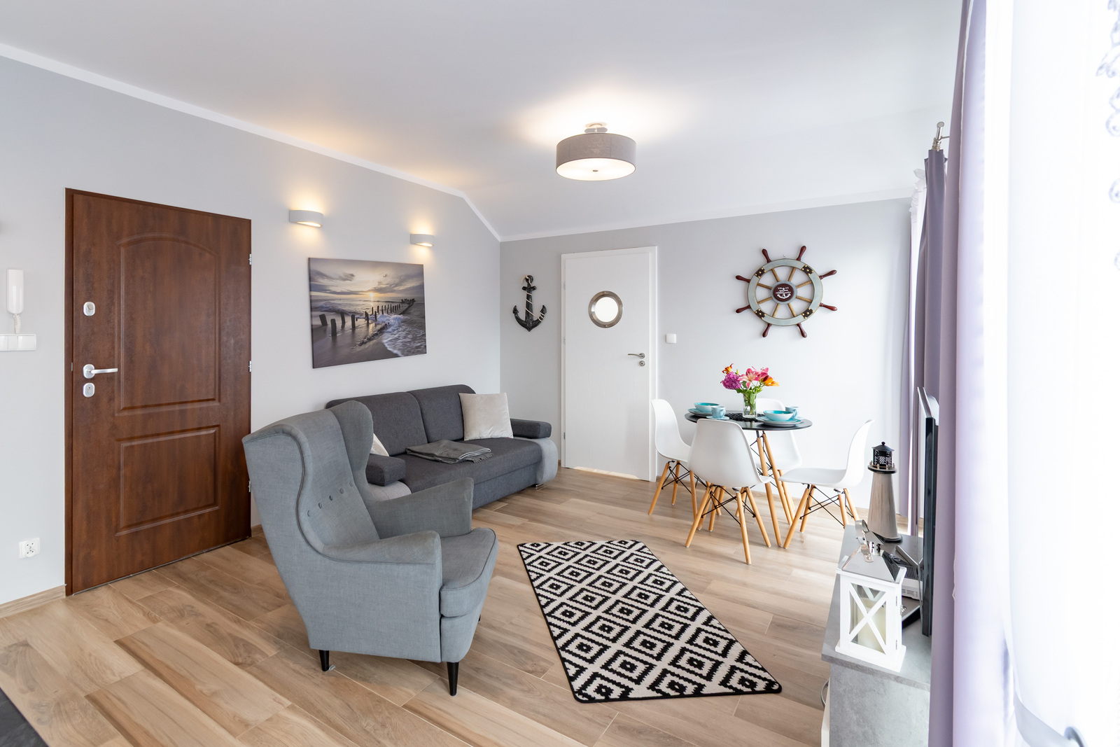 Niezależny, w pełni wyposażony Apartament Słowiński o powierzchni 34 m², położony na drugim piętrze, z dwoma balkonami.