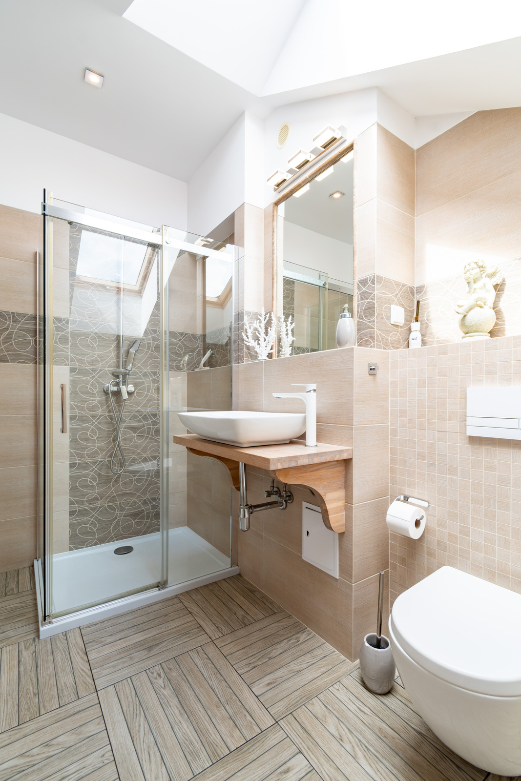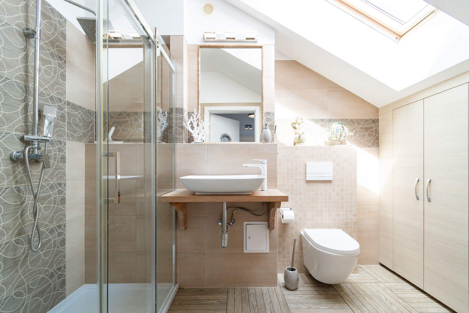 Łazienka: prysznic wraz z deszczownicą, ręczniki, suszarka do włosów.
